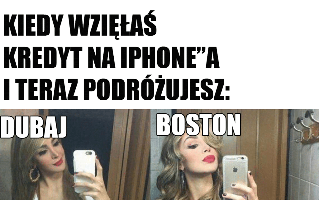 Kiedy wzięłaś kredyt na iPhona i teraz podróżujesz – mem z udostepniane.pl